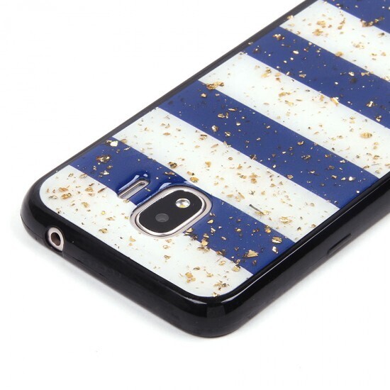 Этот стильный чехол для Samsung Galaxy J2 (2018) обеспечит вашему телефону надежную защиту и добавит индивидуальности. Гибкий полиуретановый материал делает его легким и удобным в использовании, а блестящий дизайн с золотистыми вкраплениями придаст вашему устройству уникальный вид. Чехол тонкий, его толщина составляет всего 0,7 мм, что позволяет ему практически не ощущаться на телефоне.