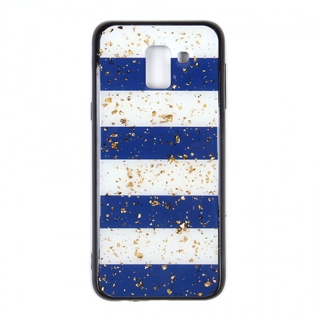 Этот чехол сочетает надежную защиту и стильный дизайн, чтобы каждый день пользоваться смартфоном было еще приятнее. В первую очередь вы заметите оригинальное сочетание синих и белых полос, дополненное золотыми блестками — аксессуар мгновенно выделяет устройство среди других, создавая настроение, а блестки привлекают взгляды.