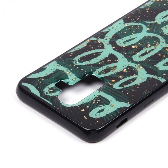 Этот чехол для Samsung Galaxy J8 (2018) сочетает в себе элегантный дизайн и надежную защиту. Гибкий полиуретановый материал обеспечивает комфортное использование, а стильный черный фон с зелеными узорами и золотистыми вкраплениями добавляет индивидуальности вашему устройству. Чехол не только защищает ваш телефон от повреждений, но и подчеркивает его стильный внешний вид.
