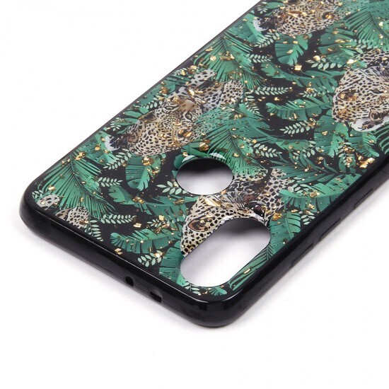 Чехол украшен ярким леопардовым принтом на черном фоне с зелеными листьями, что придает ему тропический и стильный вид. Картинка нанесена изнутри, что гарантирует ее долговечность и защиту от стирания. Все вырезы для камеры и кнопок выполнены с высокой точностью, что обеспечивает легкий доступ ко всем функциям вашего устройства.