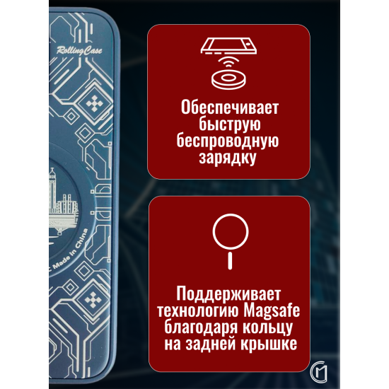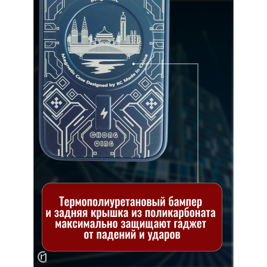 Обеспечьте своему iPhone 11 надежную защиту и стильный внешний вид с чехлом Magnetic Case. Этот чехол не только защищает ваше устройство от повреждений, но и добавляет ему уникальности благодаря современному дизайну с графическими элементами, напоминающими схемы электроники. Прозрачная задняя поверхность с фиолетовыми акцентами вокруг камеры делает его идеальным выбором для тех, кто ценит как функциональность, так и эстетику.