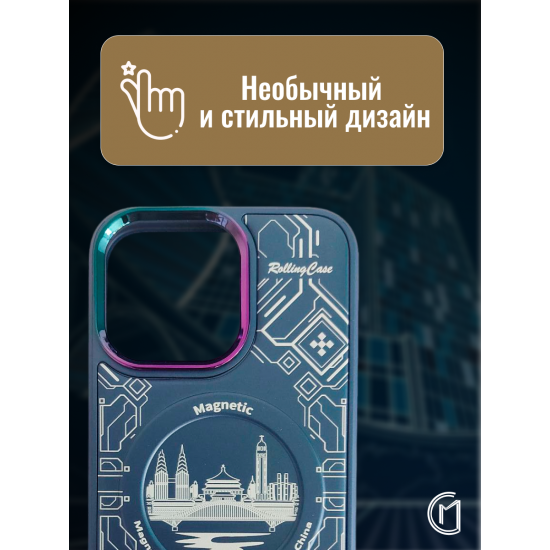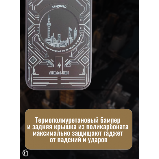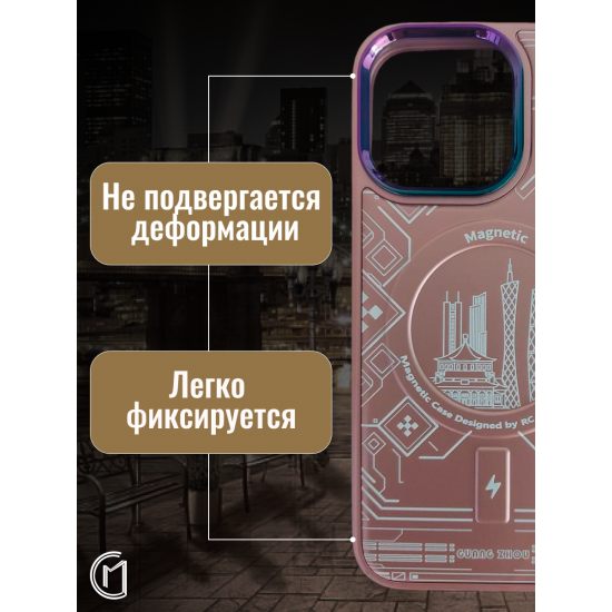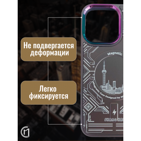 Изготовленный из прочного, легкого полимера, этот чехол защищает от падений, ударов и царапин, обеспечивая долговечность и практичность в использовании. Встроенное магнитное кольцо позволяет фиксировать смартфон, использовать в качестве подставки и поддерживать технологию MagSafe для быстрой и безопасной зарядки.