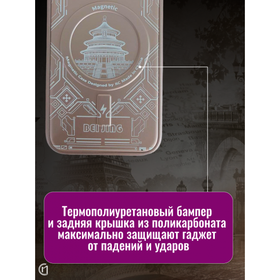 Специальная текстура боковых граней обеспечивает антискользящий хват, а ультратонкий профиль (всего 0.8 мм) сохраняет эргономику смартфона. Современный дизайн с архитектурными мотивами превращает аксессуар в стильный акцент, подчёркивающий ваш вкус.