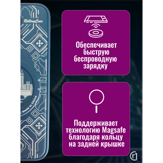 Усиленная рамка вокруг камеры предотвращает повреждение объективов, а точные вырезы обеспечивают полный доступ к разъёмам и кнопкам. Магнитное кольцо-подставка на задней панели позволяет удобно размещать телефон для просмотра контента.
