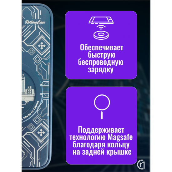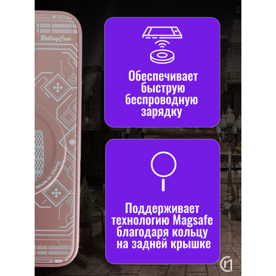 Магнитный чехол «RollingCase» для iPhone 14 Plus сочетает элегантный дизайн и передовые технологии. Идеальное решение для тех, кто ценит надежность и эстетику — теперь ваше устройство защищено от ударов, а его внешний вид дополнен уникальным графическим узором.