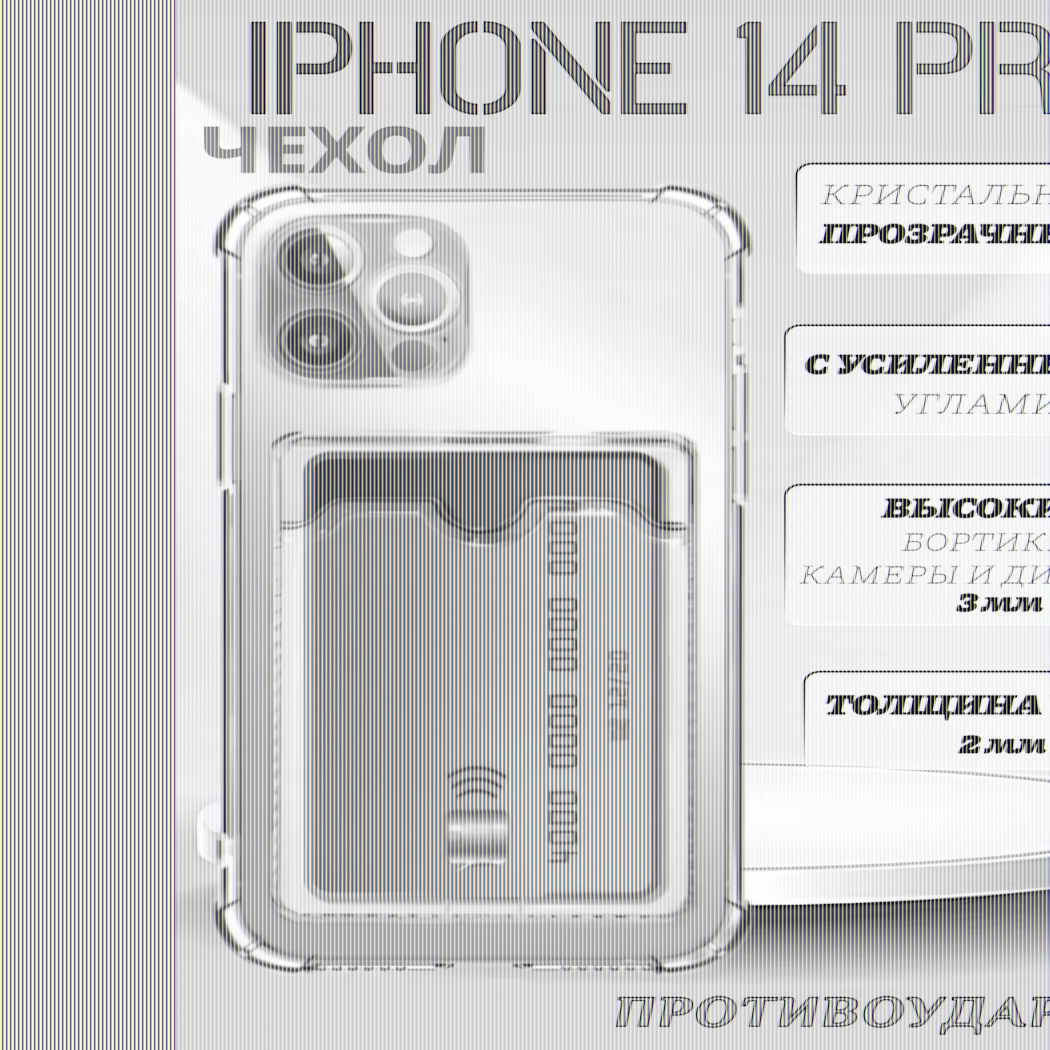 Чехол для iPhone 14 Pro, прозрачный силиконовый с карманом, противоударный, защита камеры и дисплея
