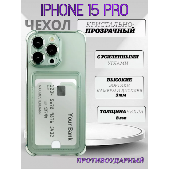 Чехол прозрачный для iPhone 15 Pro с карманом