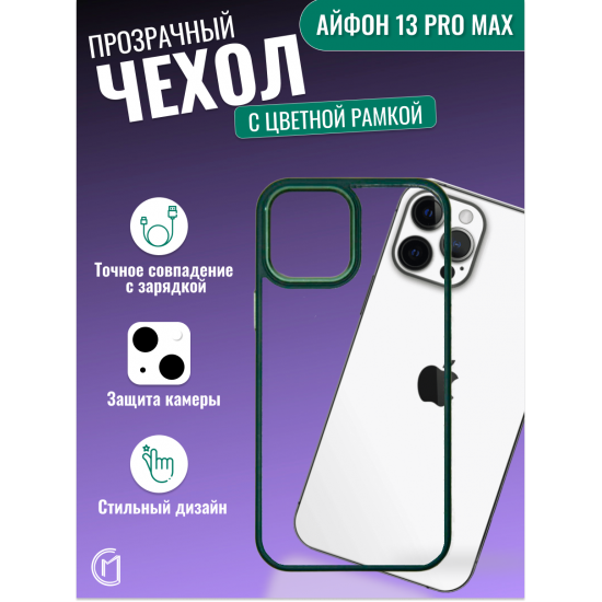 Прозрачный силиконовый бампер с цветной окантовкой создан для ценителей оригинального дизайна iPhone 13 Pro Max. Сочетает максимальную защиту от ударов с возможностью демонстрировать фирменный логотип Apple.