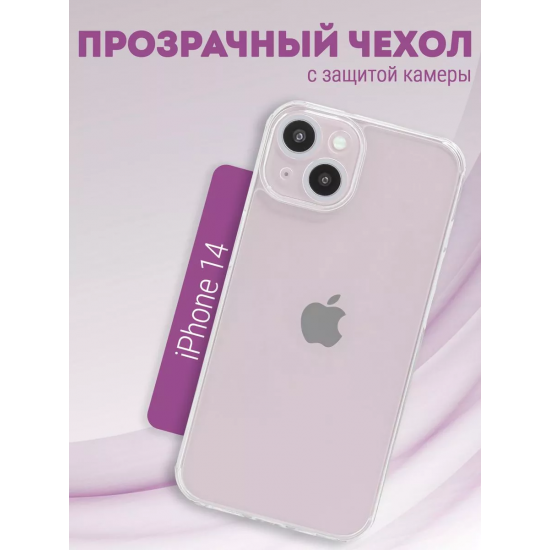 Чехол силиконовый прозрачный для iPhone 14, с защитой камеры, легкий и надежный