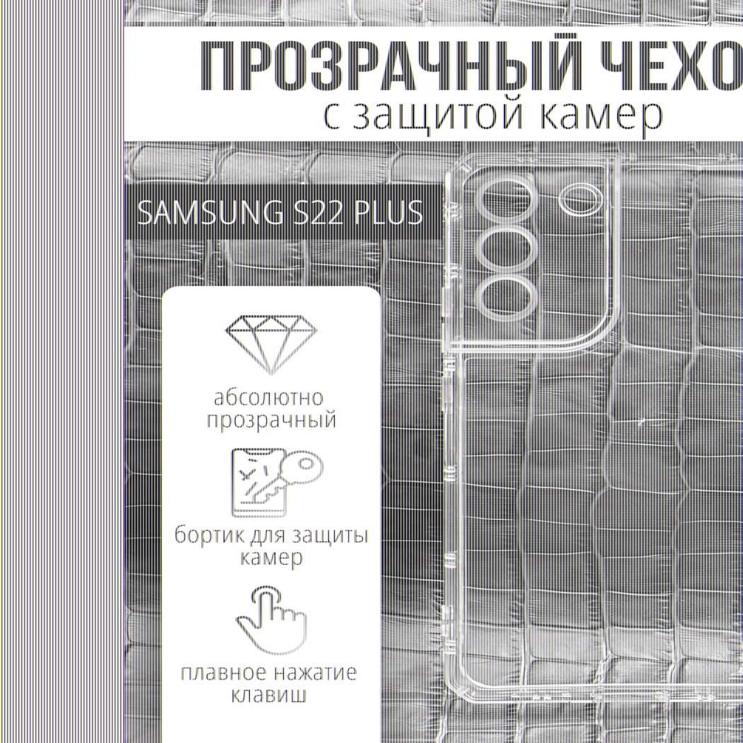 Чехол прозрачный для Samsung Galaxy S22 Plus, силикон, защита камеры, гибкий