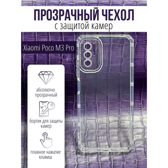 Чехол силиконовый прозрачный с защитой камеры для Xiaomi Poco M3 Pro, тонкий