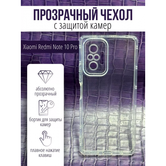 Прозрачный силиконовый чехол сохранит оригинальный дизайн Xiaomi Redmi Note 10 Pro, обеспечивая комплексную защиту от царапин и повреждений. Усиленный бортик вокруг камеры предотвращает появление сколов на стекле, а эластичный материал амортизирует удары при падении.