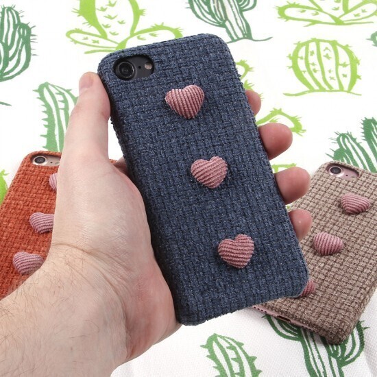Чехол текстильный с сердечками для iPhone 7, оранжевый, мягкий велюр