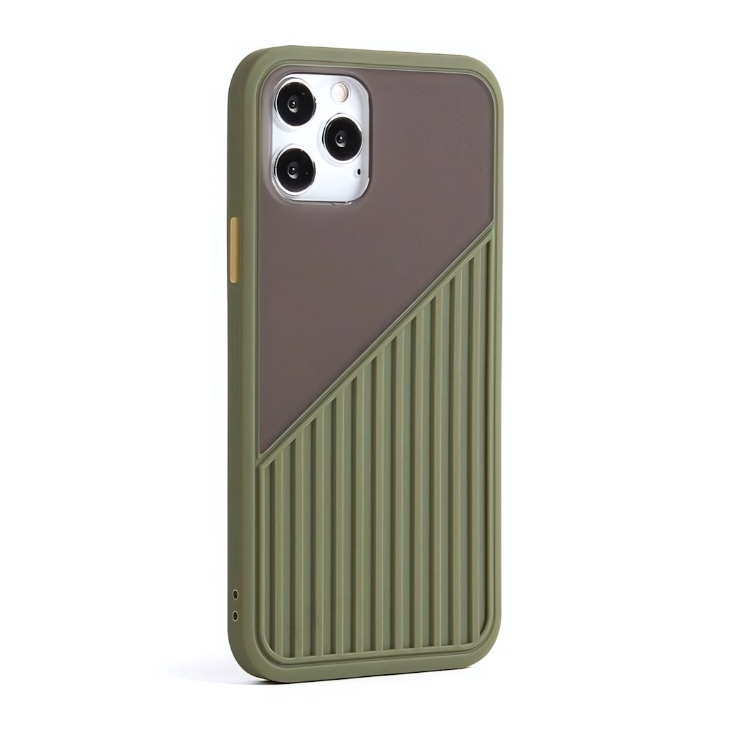 Сочетание двух материалов: задняя панель из матового soft-touch пластика устойчива к отпечаткам, а силиконовые боковины с рифлёной текстурой обеспечивают надёжный хват. Чехол не добавляет лишнего объёма, сохраняя стильный профиль iPhone 12 Pro.