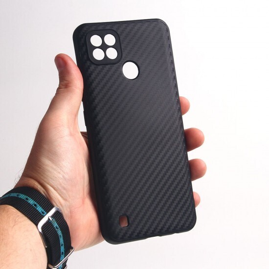 Чехол ТПУ ультратонкий для Realme C21 с карбоновой текстурой, чёрный, антискользящие грани