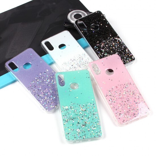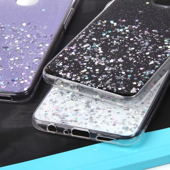 Чехол изготовлен из качественного термопластичного полиуретана (ТПУ), который сочетает прочность и гибкость. Прозрачные боковины подчеркивают оригинальный дизайн вашего телефона, а задняя часть украшена блестками, которые никогда не осыпаются.