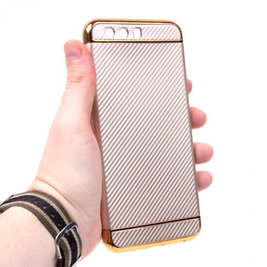 Чехол для Huawei P10 Plus, ТПУ+пластик, серебристый, ударопрочный, стильный карбон