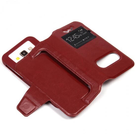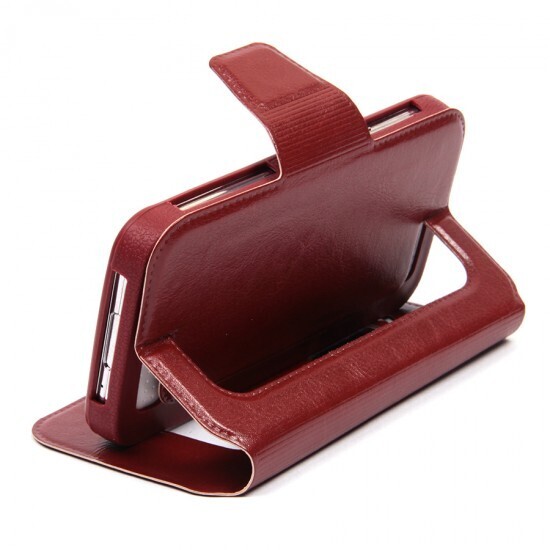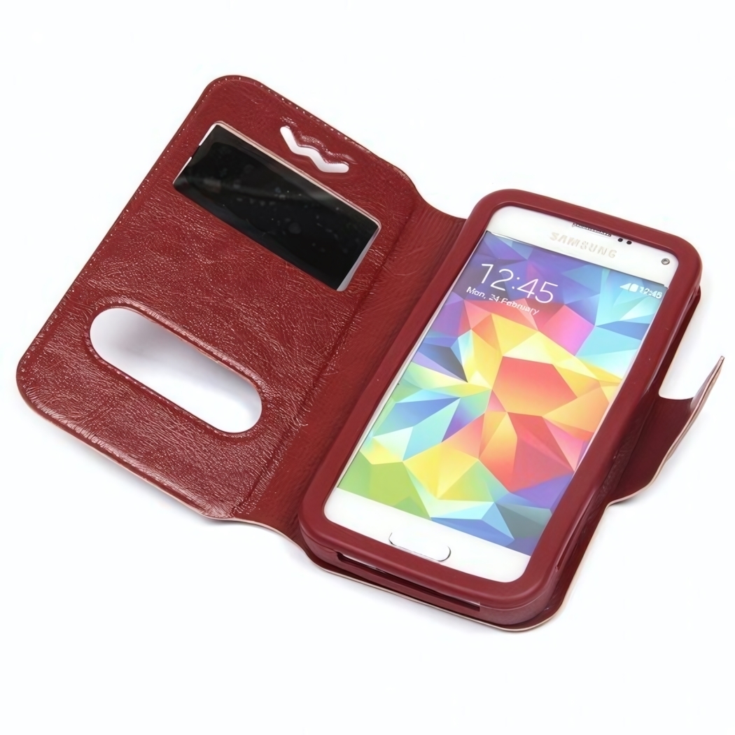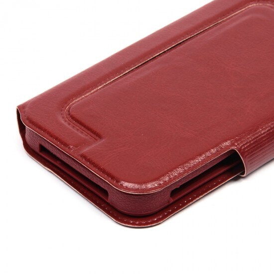 Чехол трансформируется в подставку, что позволяет удобно просматривать видео или читать. Он оснащен окошком под дисплей, что дает возможность видеть уведомления, не открывая крышку. Подходит для различных моделей смартфонов, включая Apple iPhone SE и Panasonic Eluga, что делает его универсальным решением для большинства пользователей.