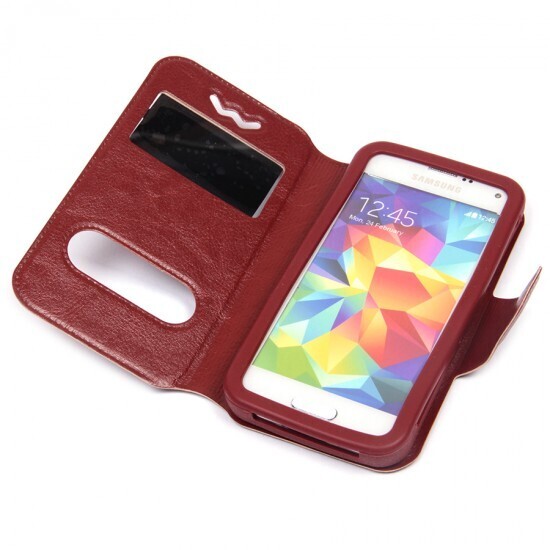 Чехол подходит для различных моделей смартфонов, включая Apple iPhone SE и Panasonic Eluga. Он оснащен окошком под дисплей, что позволяет быстро проверять уведомления и время, не открывая крышку. Жесткая обложка с магнитным язычком надежно фиксирует чехол в закрытом состоянии, защищая устройство от механических повреждений.