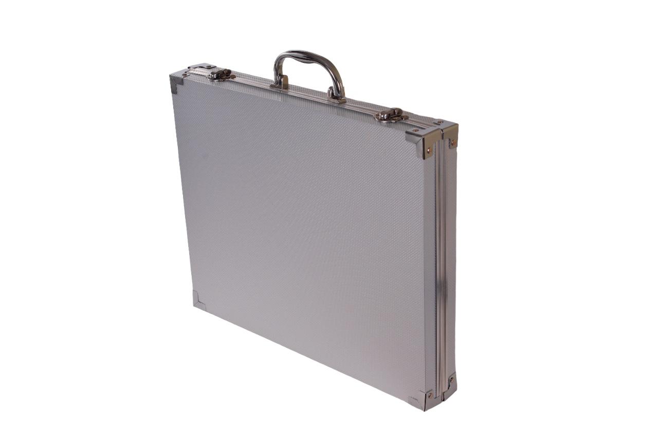 Габариты 38×30×6 см оптимальны для размещения стандартных наборов гуаши (25 мл) и кистей до 23 см. Плоская форма позволяет хранить кейс на полке или в шкафу. Вес пустого чемоданчика — 1.2 кг, что обеспечивает мобильность без ущерба прочности.