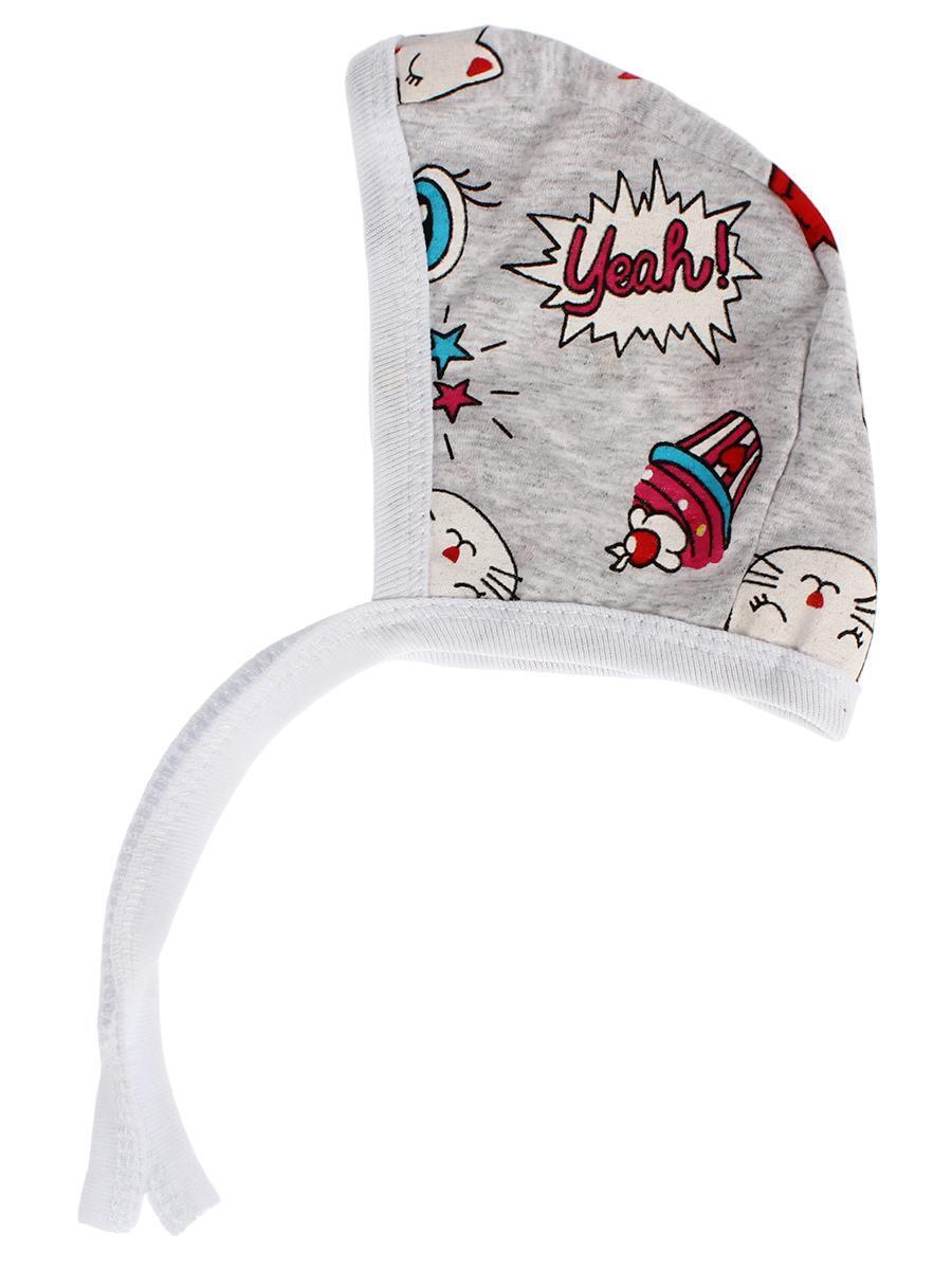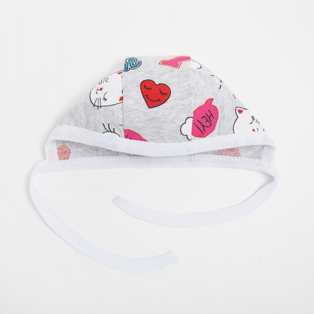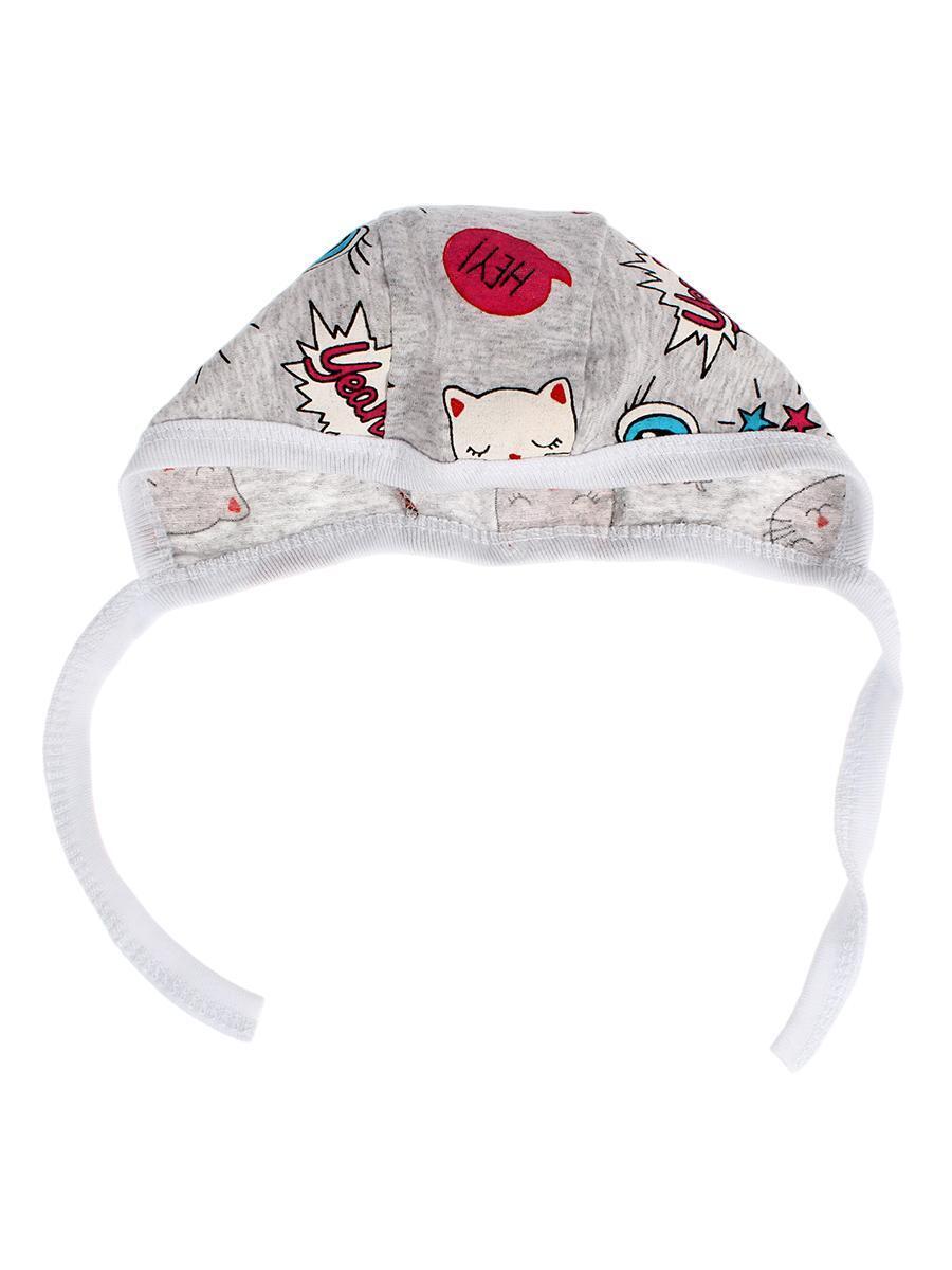 Чепчик для девочки "Тошка" серый с принтом, р.68, мягкий хлопок, комфорт и стиль