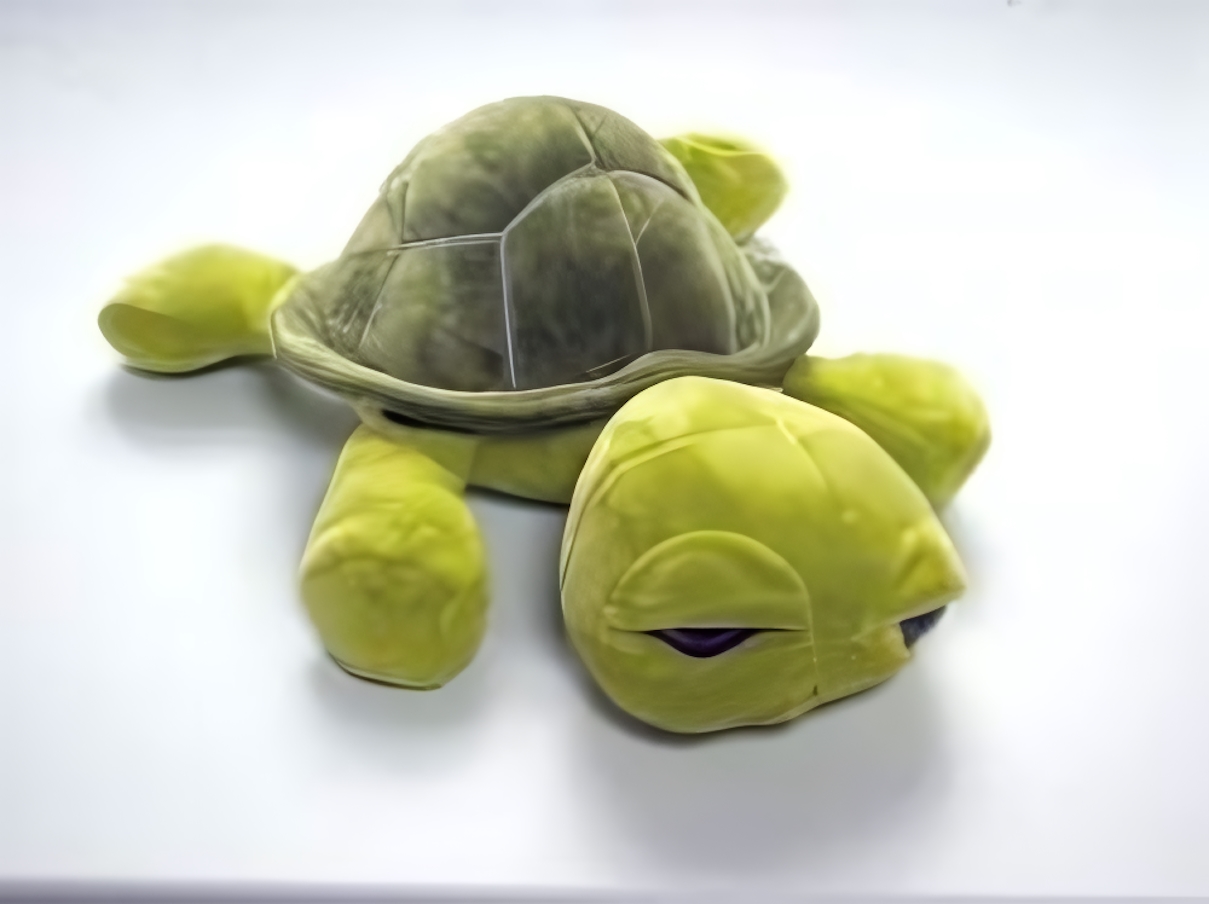 Эта мягкая игрушка в форме черепахи превосходно сочетает реалистичный дизайн и приятные тактильные ощущения, создавая атмосферу уюта и радости. Зеленая голова, лапы и хвост гармонично дополняются панцирем в темно-зеленых и серо-зеленых оттенках, а детализированная сегментация панциря имитирует натуральную структуру.