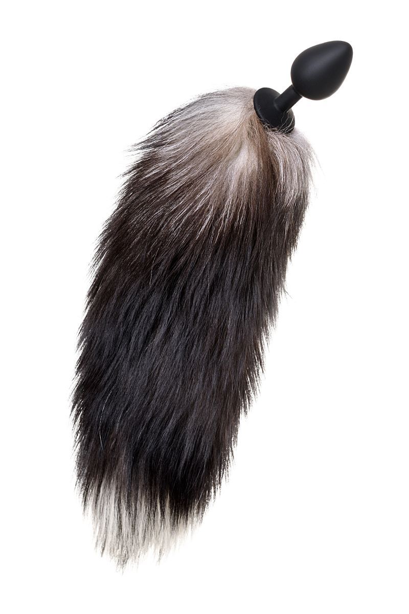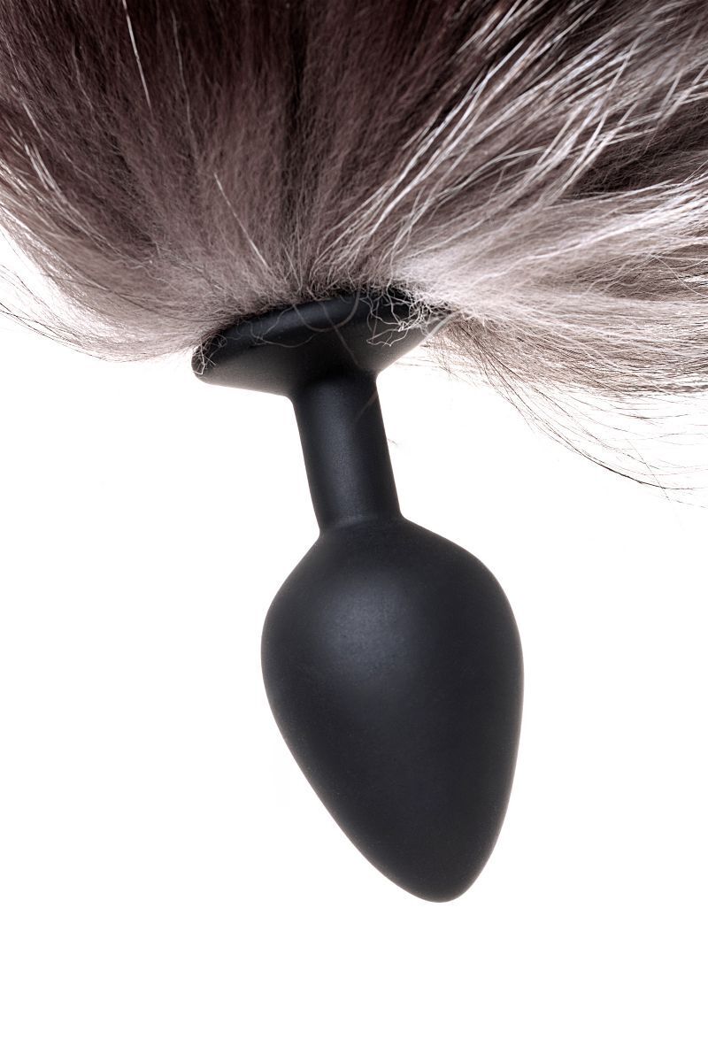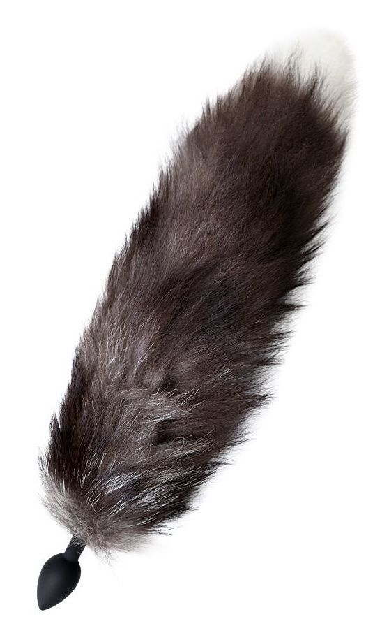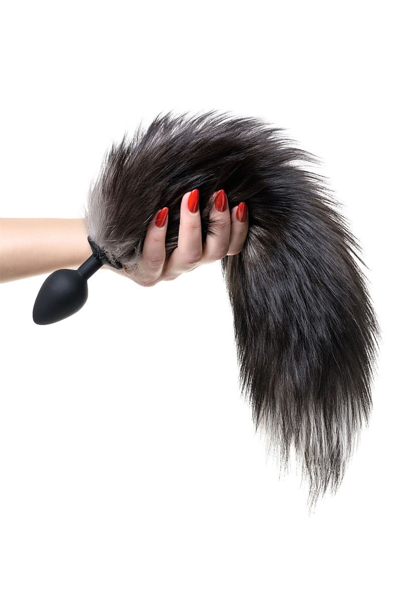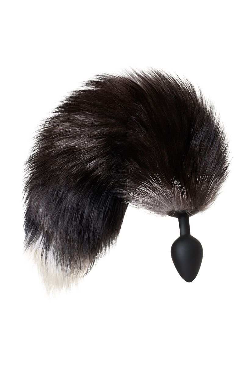 Анальная втулка «Pet Play Plug» с хвостом лисы, силикон, натуральный мех, размер М, черный