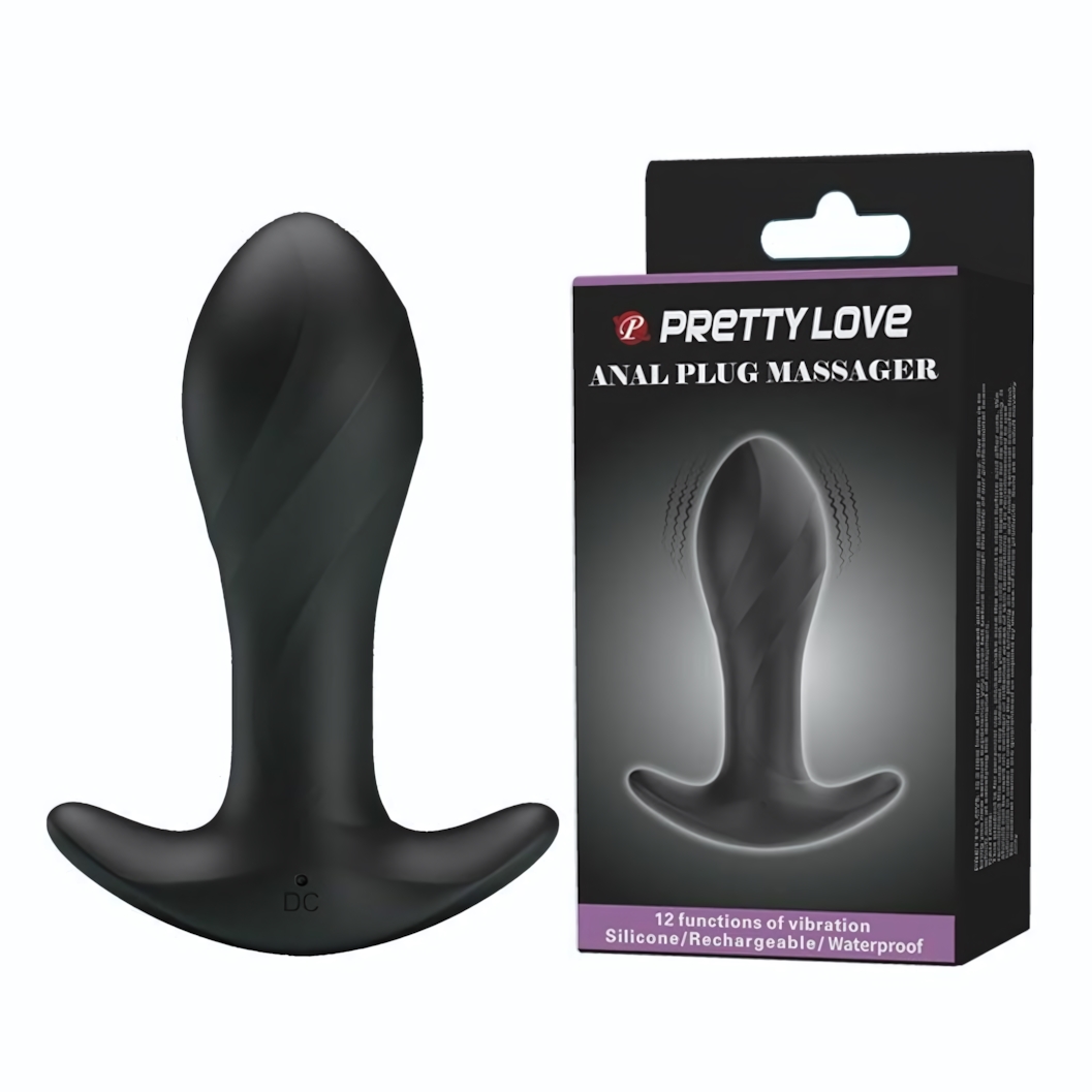 Анальный вибратор Pretty Love, силикон, 10,5 см, 12 режимов, черный, перезаряжаемый, водонепроницаемый