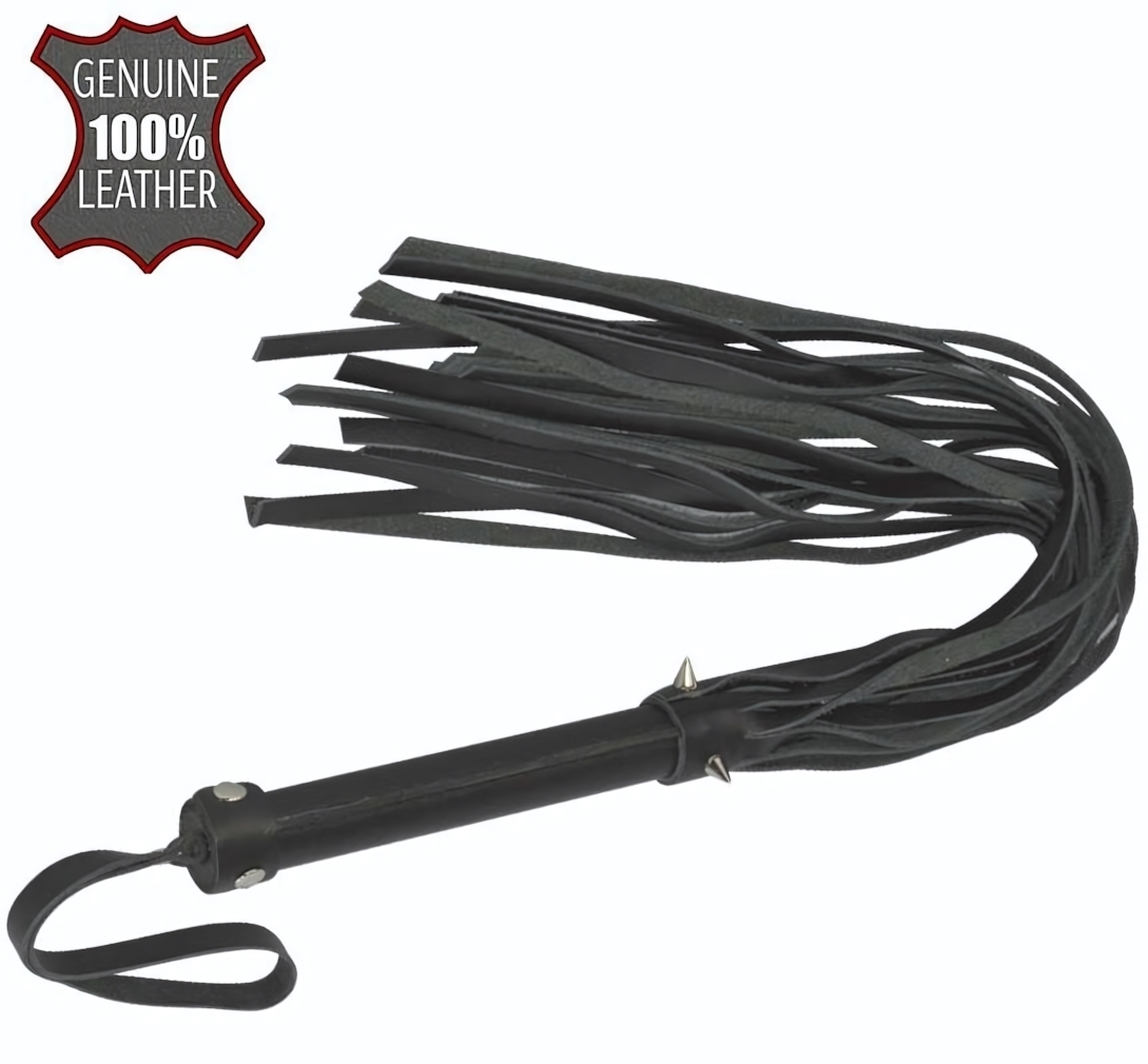 Плеть кожаная "Sitabella" черная, длина 55см, с металлическими шипами