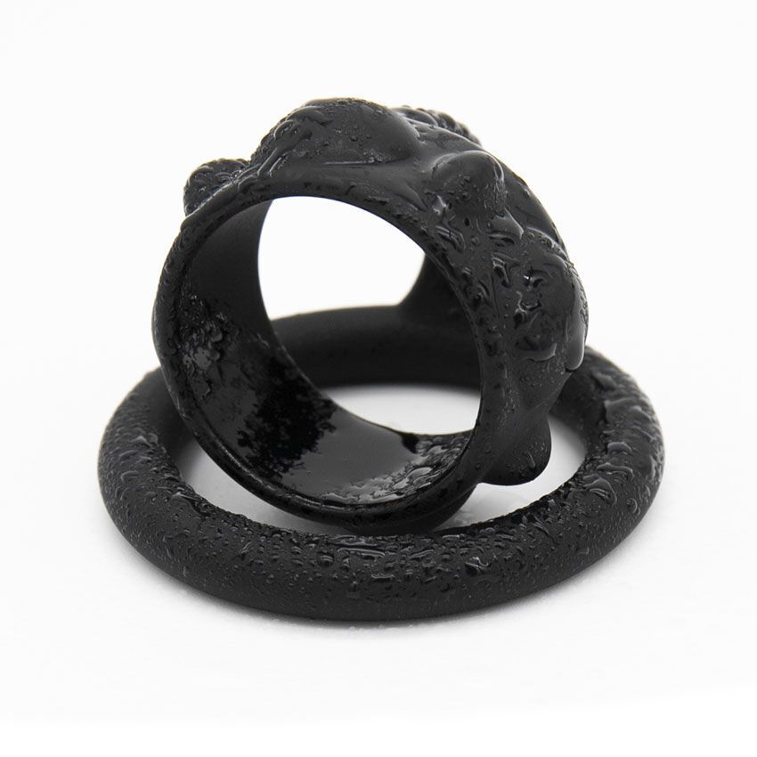 Эрекционная насадка с анатомическими выступами, силикон, 6,2 см, черный цвет, усиление комфорта