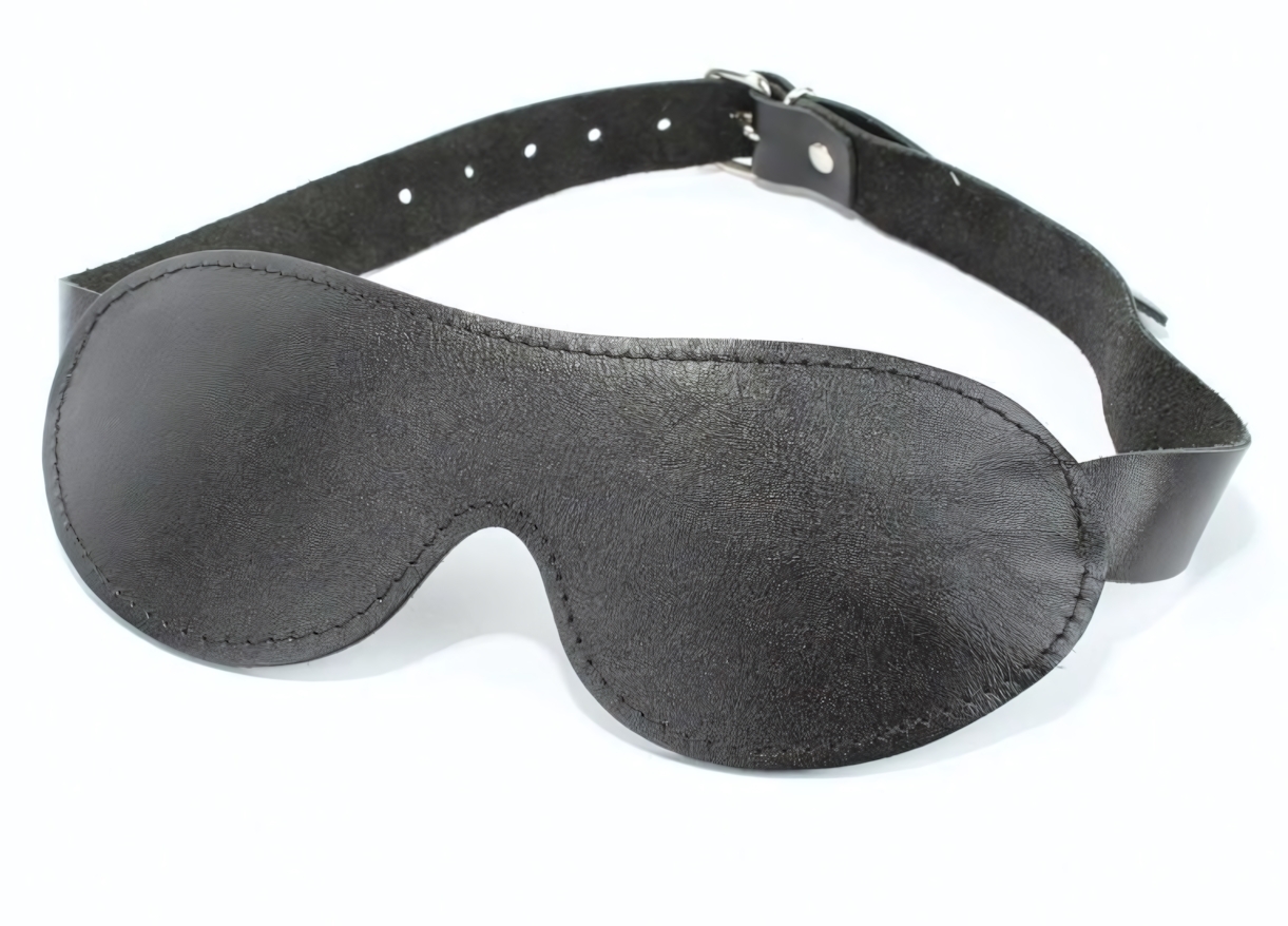 Маска для сна из натуральной кожи, черная, регулируемые ремни, обхват 47-60 см, 2 см ширина