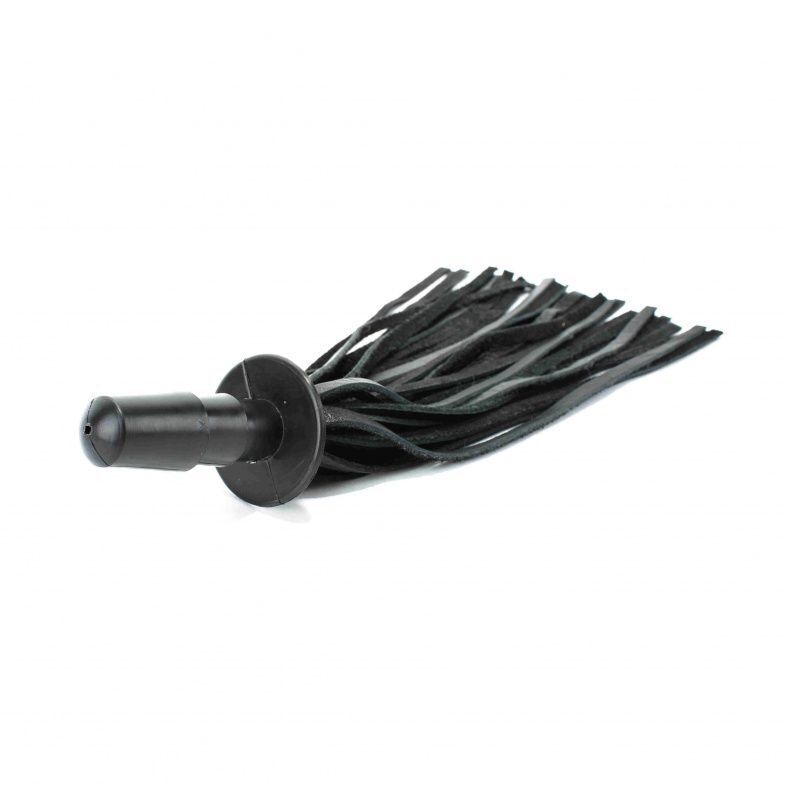 Черная кожаная плеть со штырьком для сменных насадок, 30 хвостов, 27 см