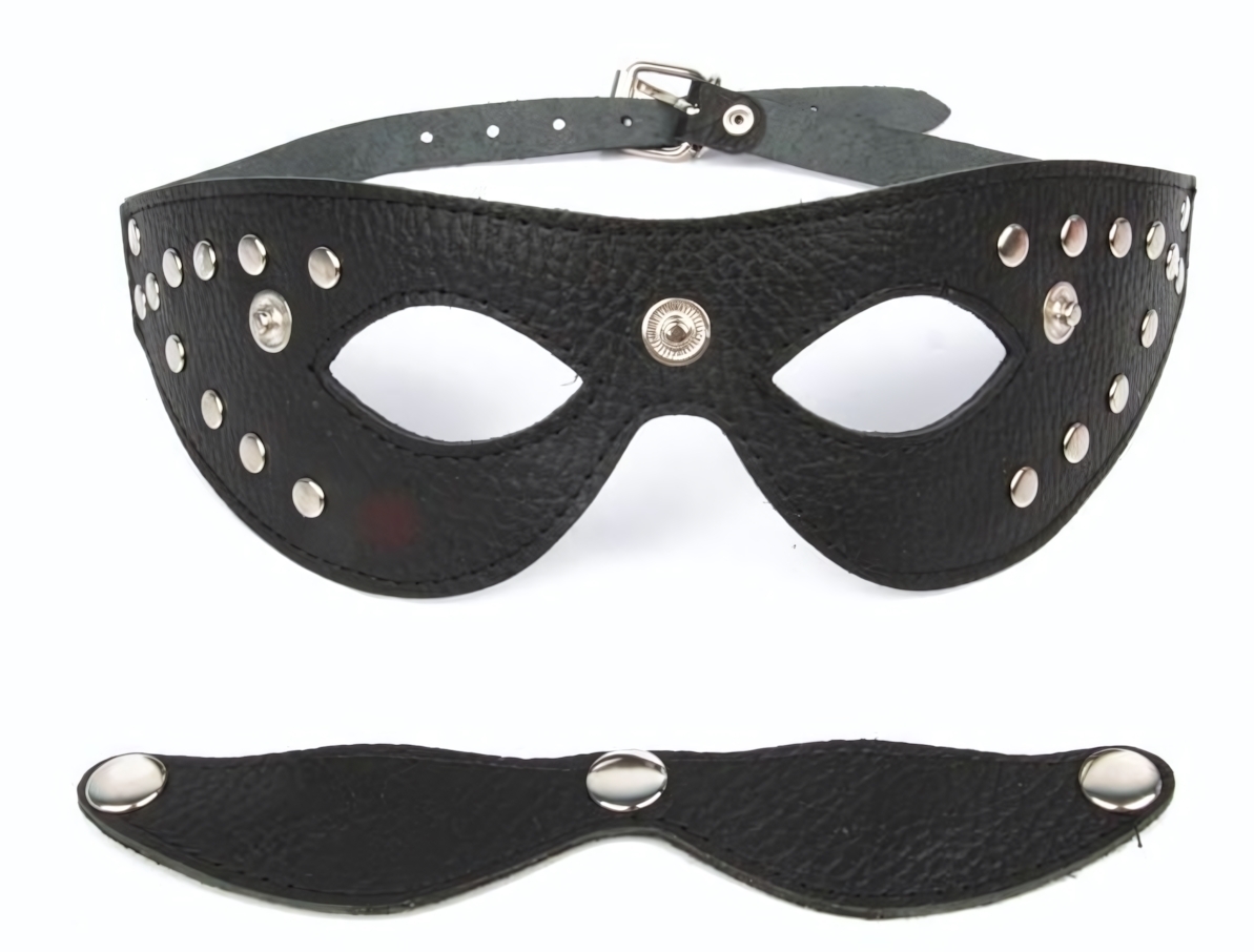 Маска выполнена из качественной искусственной кожи, которая приятна к телу и проста в уходе. Регулируемый ремешок обеспечивает комфортную посадку, а продуманный дизайн позволяет легко надевать и снимать аксессуар.