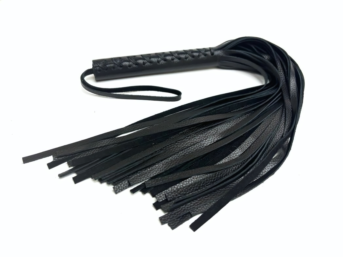 Элегантная черная многохвостовая плеть из натуральной кожи