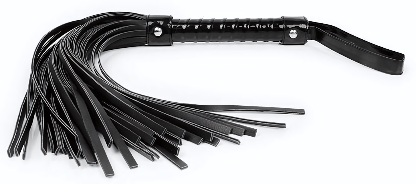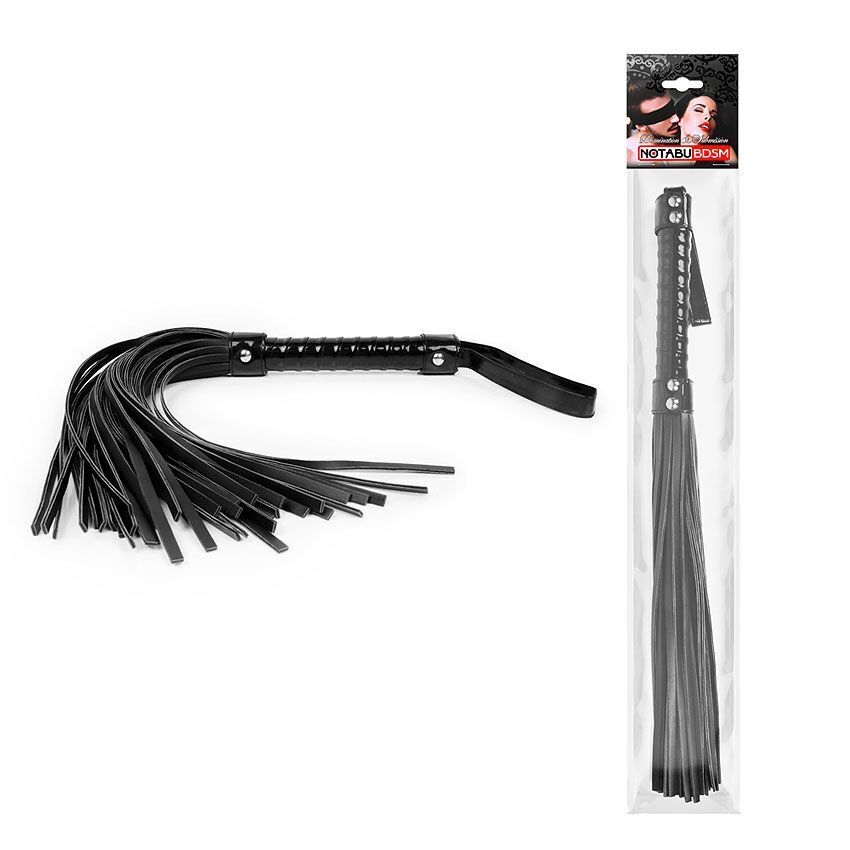 Плеть-флогер Notabu, 43 см, ПВХ, черный глянец, удобная рукоятка с петлей