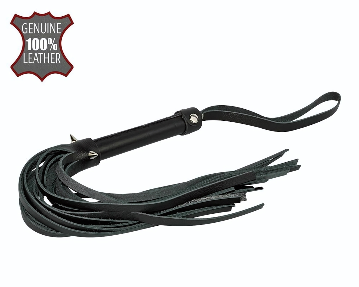 Плеть кожаная 'BDSM accessories' с металлическими шипами, длина 40см, черная