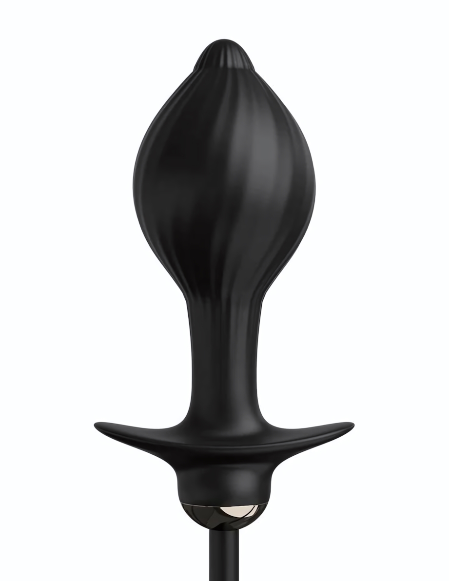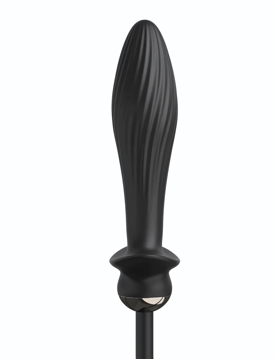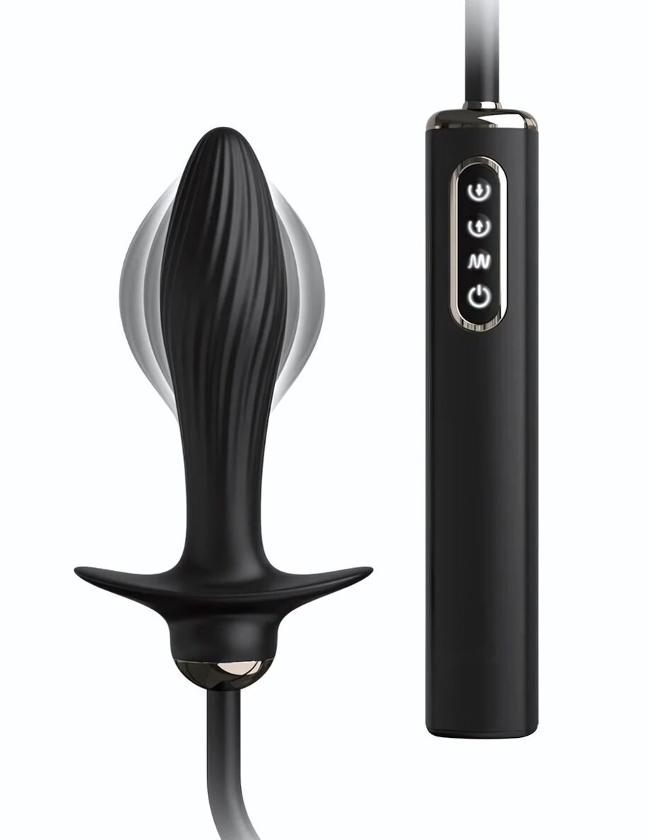 Вибропробка анальная надувная с авто-пульсацией, силикон, 13 см, черный, коллекция Anal Fantasy Elite
