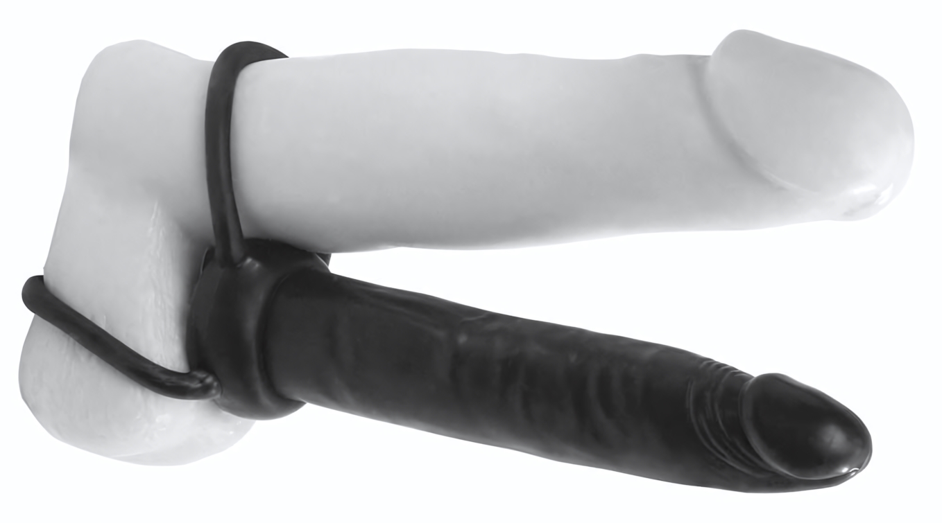 Насадка для двойного проникновения «Double Trouble», силикон, цвет чёрный, длина 15,3 см/рабочая 13,3 см