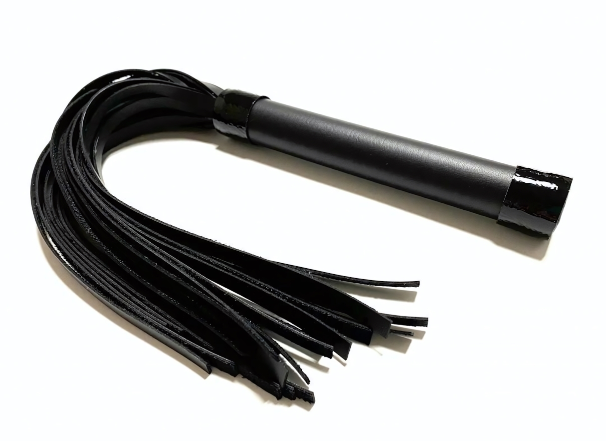 Плеть выполнена из искусственной кожи черного цвета, что делает ее универсальным аксессуаром, подходящим к любому стилю. Длина в 42 см позволяет легко управлять ею, а легкий вес делает использование комфортным. Этот аксессуар станет отличным дополнением к вашей коллекции БДСМ атрибутики.