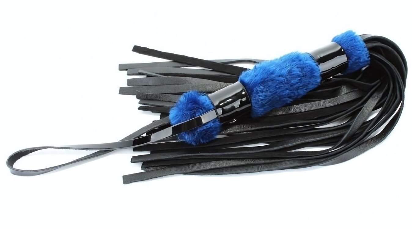 Сочетание мягкого меха и натуральной кожи создаёт идеальный баланс между эстетикой и функциональностью. Мягкие синие вставки на рукояти обеспечивают комфортный хват, а эластичные кожаные хвосты позволяют точно контролировать интенсивность воздействия.
