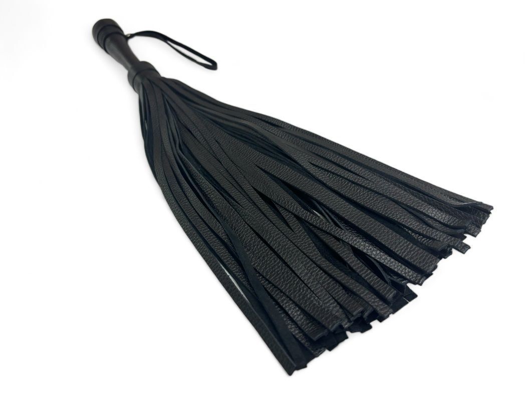 Длина плети составляет 55 см, а хвосты — 38 см. Изготовлена из высококачественной натуральной кожи черного цвета, что делает ее не только стильной, но и долговечной. Плеть подходит для использования в различных условиях, что делает ее универсальным аксессуаром для любителей BDSM.
