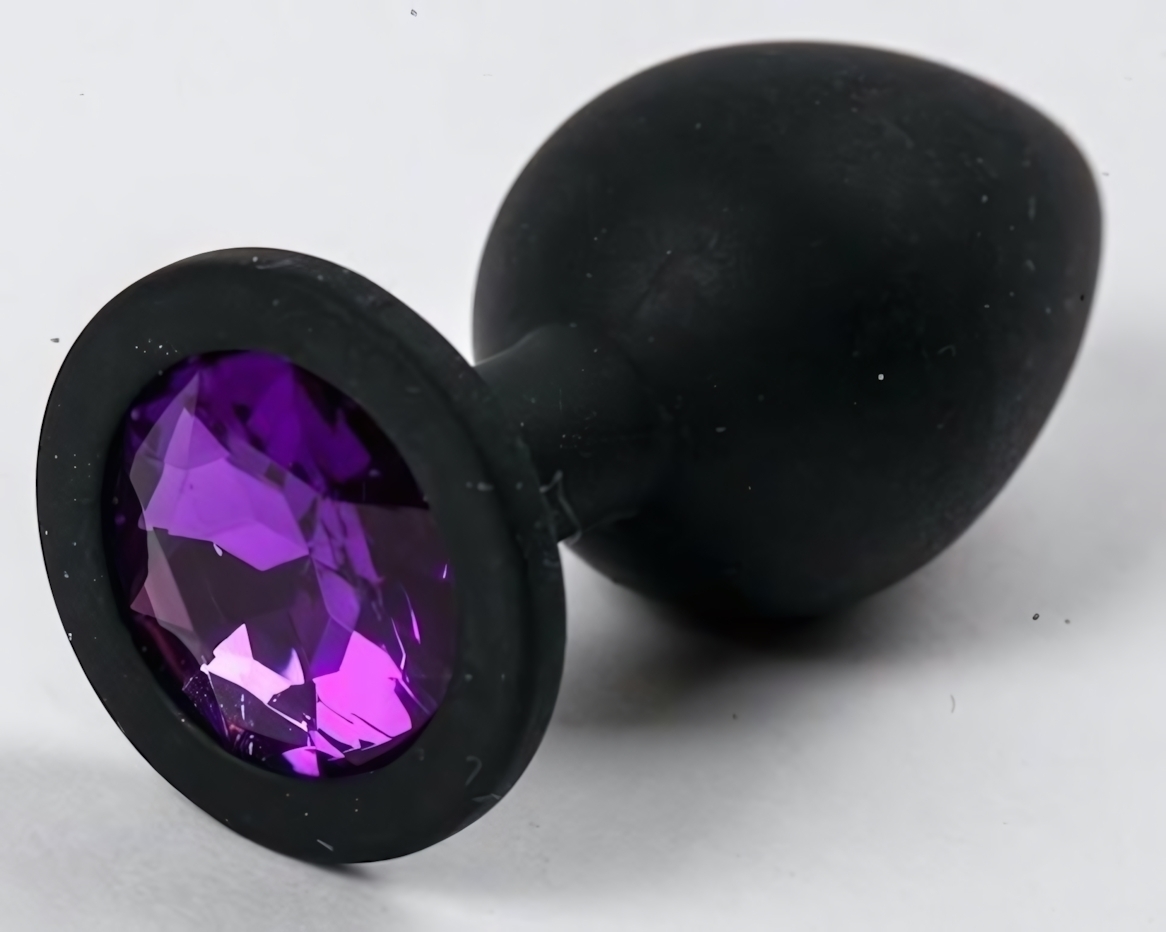 Анальная пробка с кристаллом, силиконовая, длина 9.5см, диаметр 4см, черный/фиолетовый