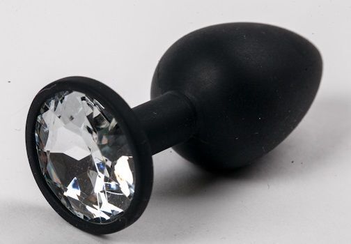 Анальная пробка из силикона для комфортной стимуляции, черная с прозрачным стразом, 7,1х2,8 см