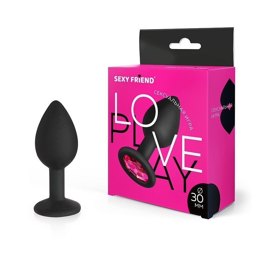 Анальная втулка с кристаллом, силиконовая, черная/малиновая, 7,3см