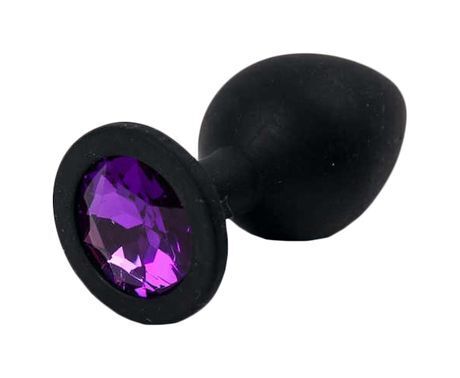 Черная силиконовая анальная пробка с фиолетовым стразом