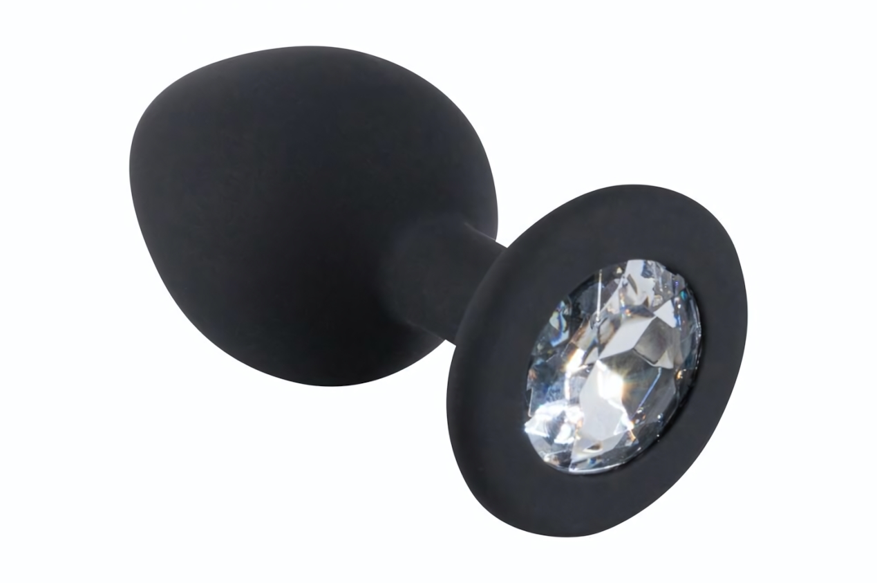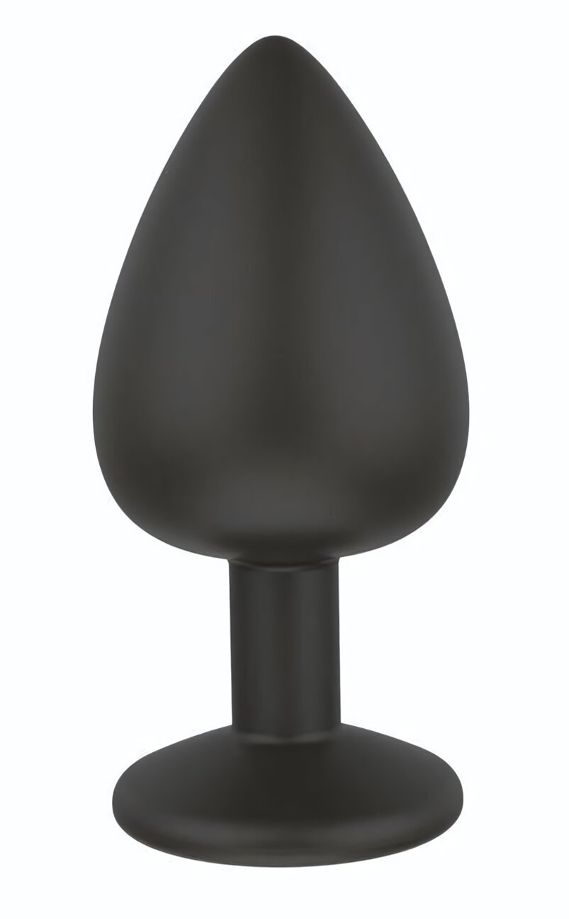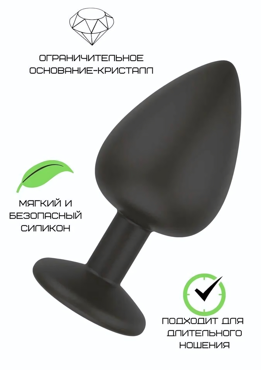 Анальная пробка с безопасным основанием-кристаллом, силиконовая, черная, диаметр 3.5 см, длина 7.2 см