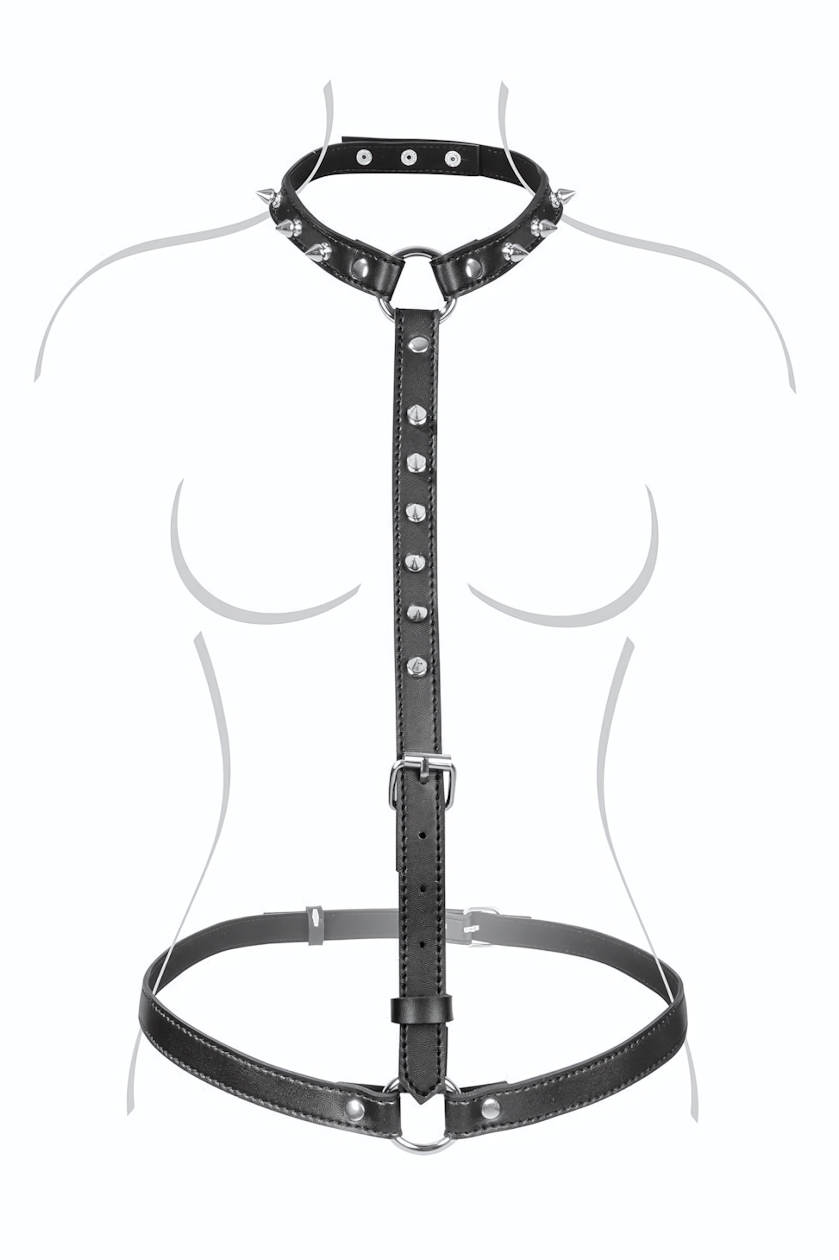 Упряжь на тело с шипами, регулируемая, искусственная кожа, черный, серия «Fetish Tentation»