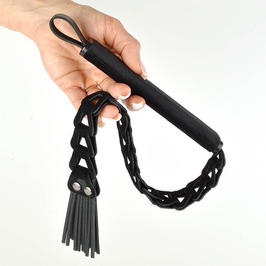 Велюровое покрытие рукояти и плети минимизирует трение, делая использование более комфортным. Компактный размер 56 см позволяет легко хранить аксессуар и брать его с собой. Черный цвет сохраняет нейтральность и универсальность для любых сценариев.