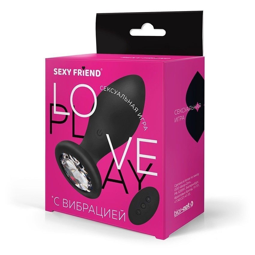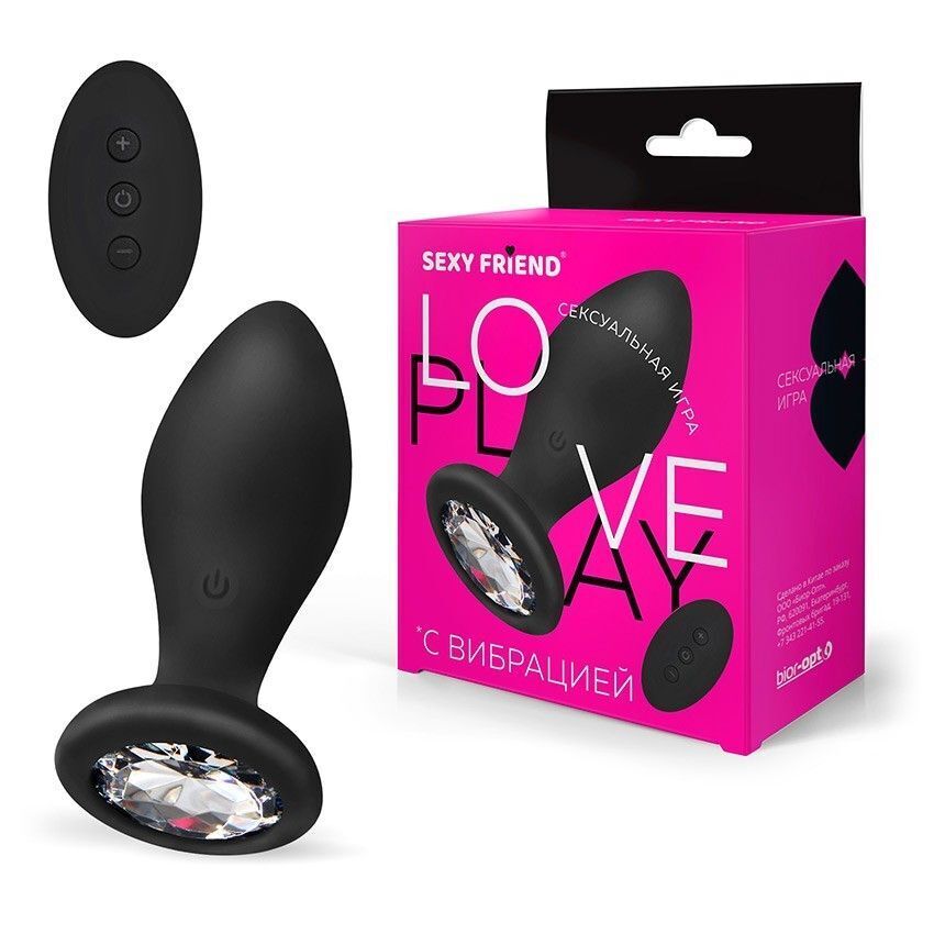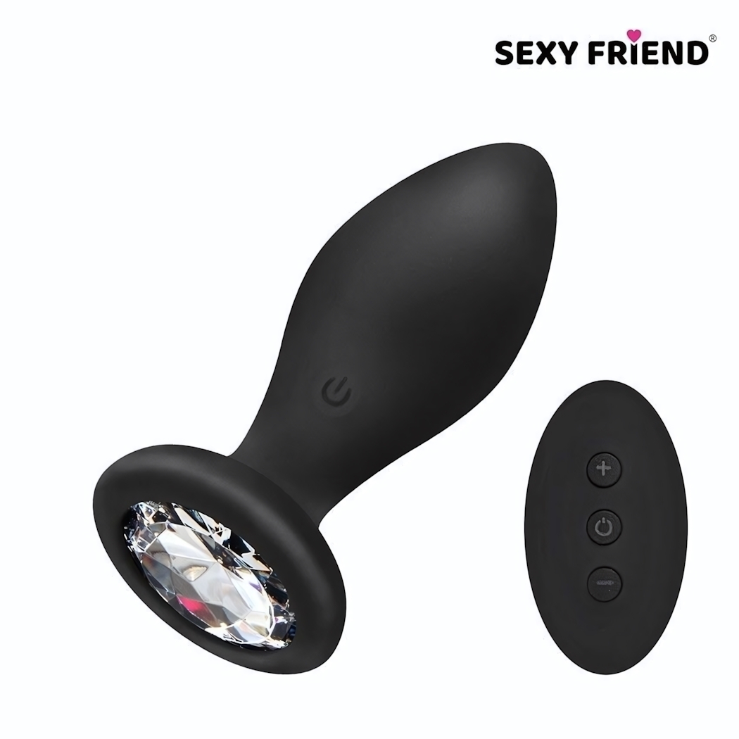 Анальная вибровтулка с пультом ДУ, 10 режимов, силикон, 8,5 см, черный с кристаллом