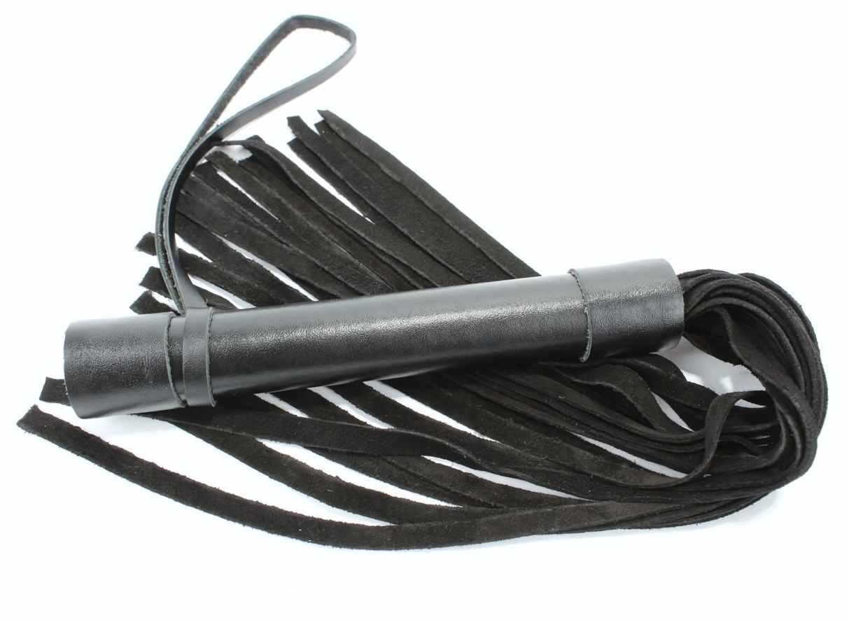 Плеть из натуральной кожи 'БДСМ Арсенал', черная, длина 45см, 23 хвоста